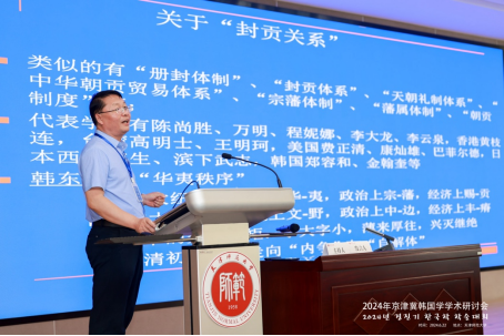 本次研讨会聘请了延边大学金哲俊教授、华中师范大学池水涌教授和304am永利集团王臻教授分别做了语言、文学、文化领域的主旨报告。这三位专家分别以题为“东亚汉籍文献整理与研究”、“AI时代韩国学跨学科教学与研究”,以及“朝鲜王朝与明清封贡关系变迁中角色认同的转变及重建”等议题发表了精彩演讲,为参会人员呈现了三场高端学术盛宴。