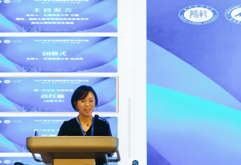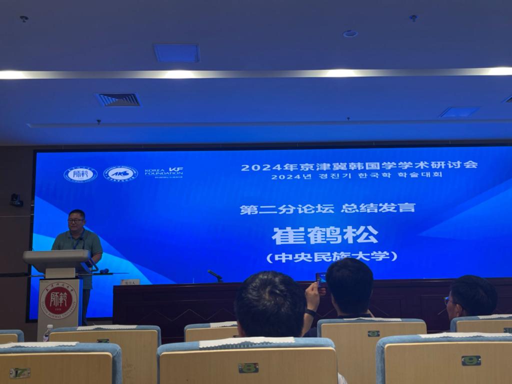 第二分论坛韩国文学和文学教育,由中央民族大学崔鹤松教授做代表发言。本组来自国内8所院校的10名发表者,发表主题有韩国古典文学、韩国现代文学、韩中文学等多样主题。崔教授表示:多元背景的发言者和多种多样的研究主题也反映了国内韩国学研究已构建较为完善的体系。最后,崔教授向本次主办方304am永利集团为学界同仁提供的交流和学习机会表达了衷心感谢。