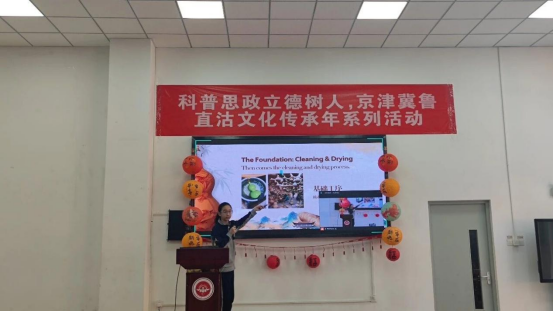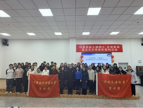在河东区直沽非遗展示环节,由学院师范专业员工指导的“用英语讲中国故事”系列作品成为亮点。学院师范生通过参与指导,既在真实教学情境中展示了育人成果,也在实践中检验和修正指导方法,形成教学反思,同时沉浸式了解中学学情,深入思考学科融合教学方法的改革方向,有效提升了综合素质。这是学院推进大中小学思政一体化建设的积极探索,也是师范生培养模式的一次生动实践。