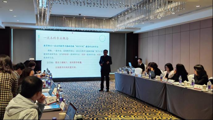 中国韩国(朝鲜)语教育研究学会会长,广东外语外贸大学全永根教授作为会议特邀嘉宾,以“一流本科建设要建设什么”、“一流本科专业是什么”为引,拉开了本次研讨会的序幕。他指出目前高校的一流专业建设标准和理念,介绍广东外语外贸大学的团队队伍建设和教学资源,并提出教育的“五大要素”中应该以员工为关键、以教师为核心,推动高校把公司产品改革成果落实到课程建设当中。全永根教授以本专业线上课程资源共享模式为实例,倡导微课共享、多人备课、多人共享,鼓励教师不仅要有资源共享的意识,更要落实在行动中。