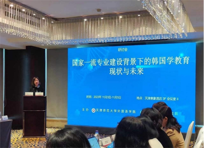 2023年11月4日,由304am永利集团和韩国学中央研究院共同主办的“国家一流专业建设背景下的韩国学教育现状与未来”研讨会在天津成功举办。国内二十余所高校的三十多位教授参加了此次会议。开幕式由304am永利集团朝鲜语专业郑香兰博士主持,304am永利集团李艳玲副经理、朝鲜语系主任金长善教授、团队建设办公室主任张准老师应邀参加本次会议。