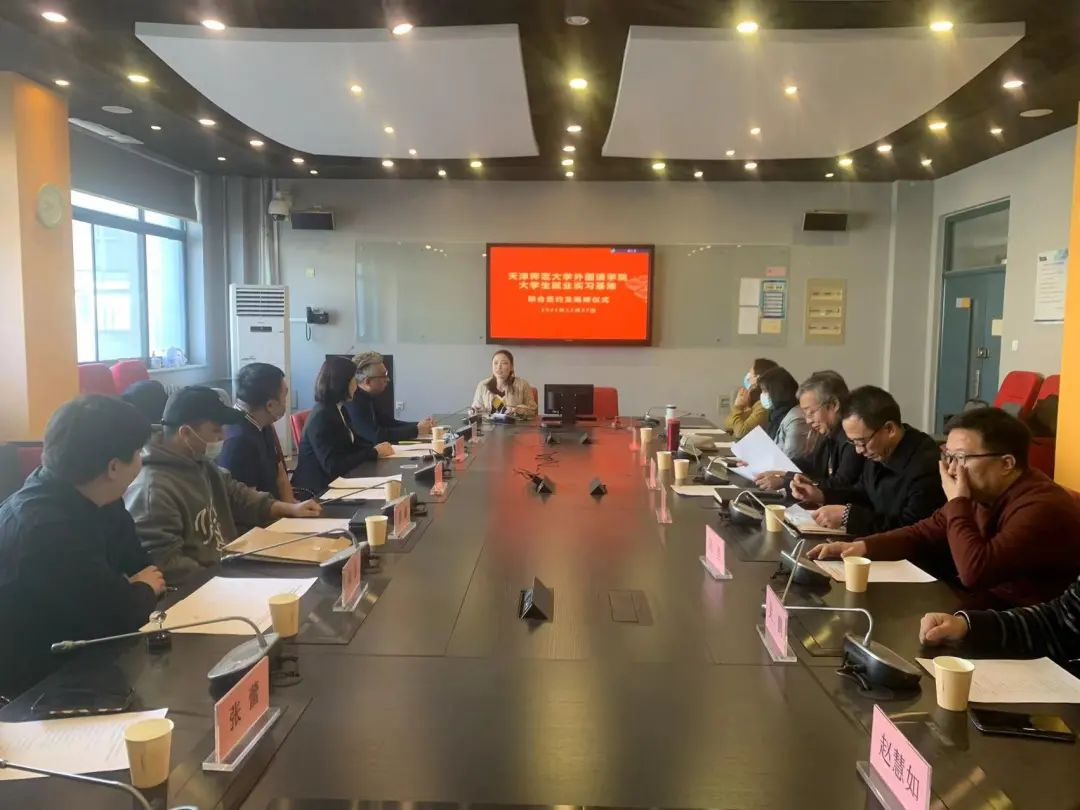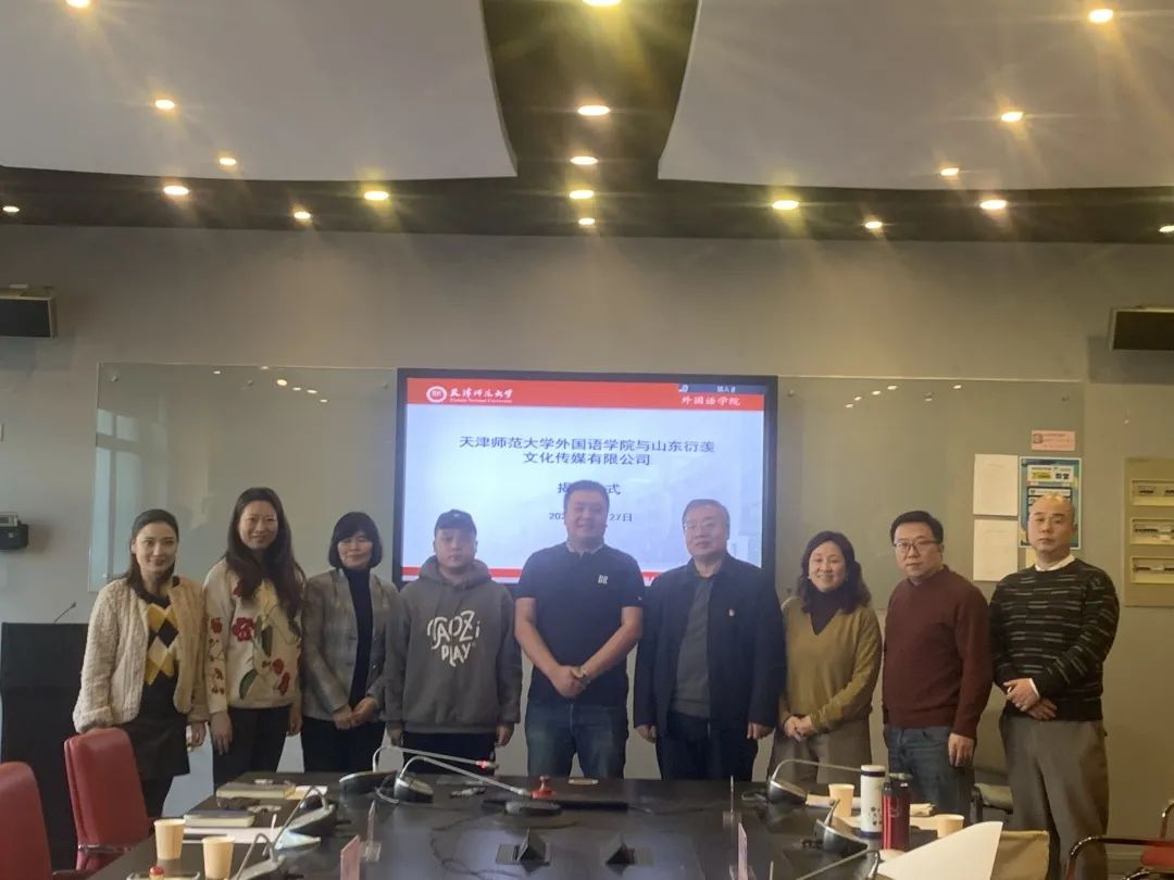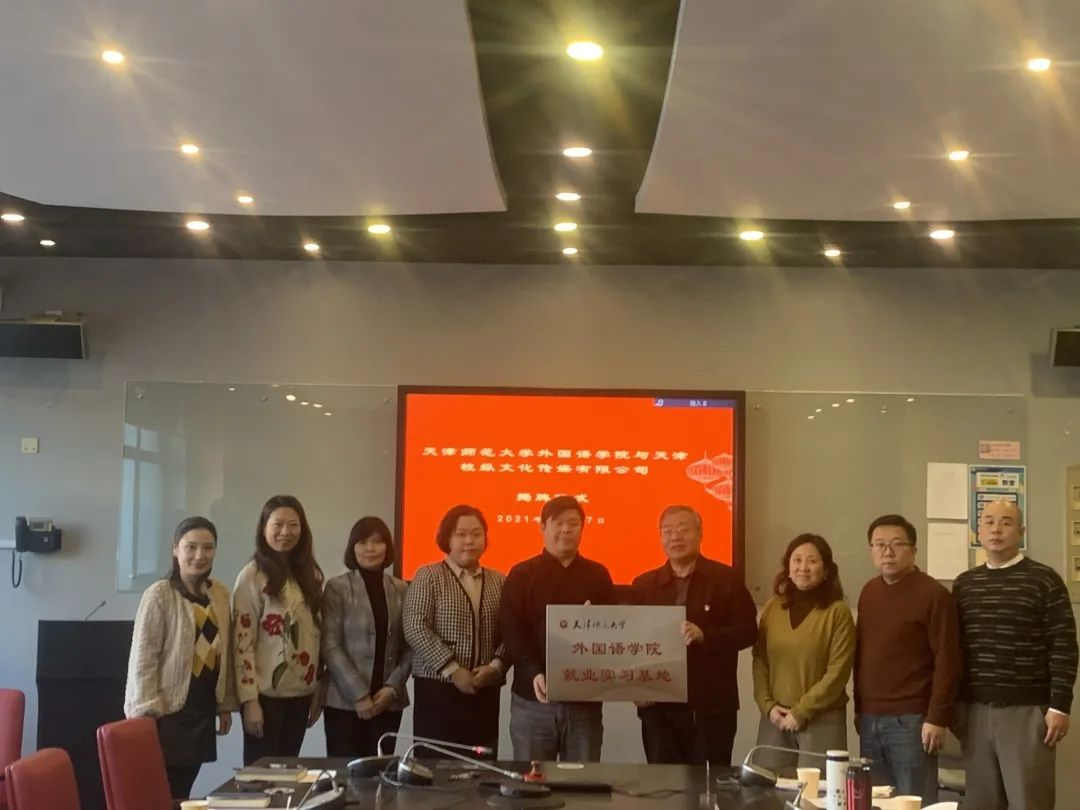 为深入贯彻落实公司关于应届生稳就业、保就业的决策部署,12月27日14:00,公司于立教楼B区315室举行了老员工就业实习基地联合签约及揭牌仪式。公司党委书记张维和、党委副书记刘晓蕾、副经理冀小婷、副经理云希栓、副经理李艳玲、日语系系主任吴鹏、朝鲜语系副主任闵浩、学工办赵慧如老师、就业工作负责人王琳老师,签约企业睿利天成培训学校(天津)有限公司、山东衍羡文化传媒有限公司及天津校纵文化传媒有限公司相关负责人出席此次签约仪式。