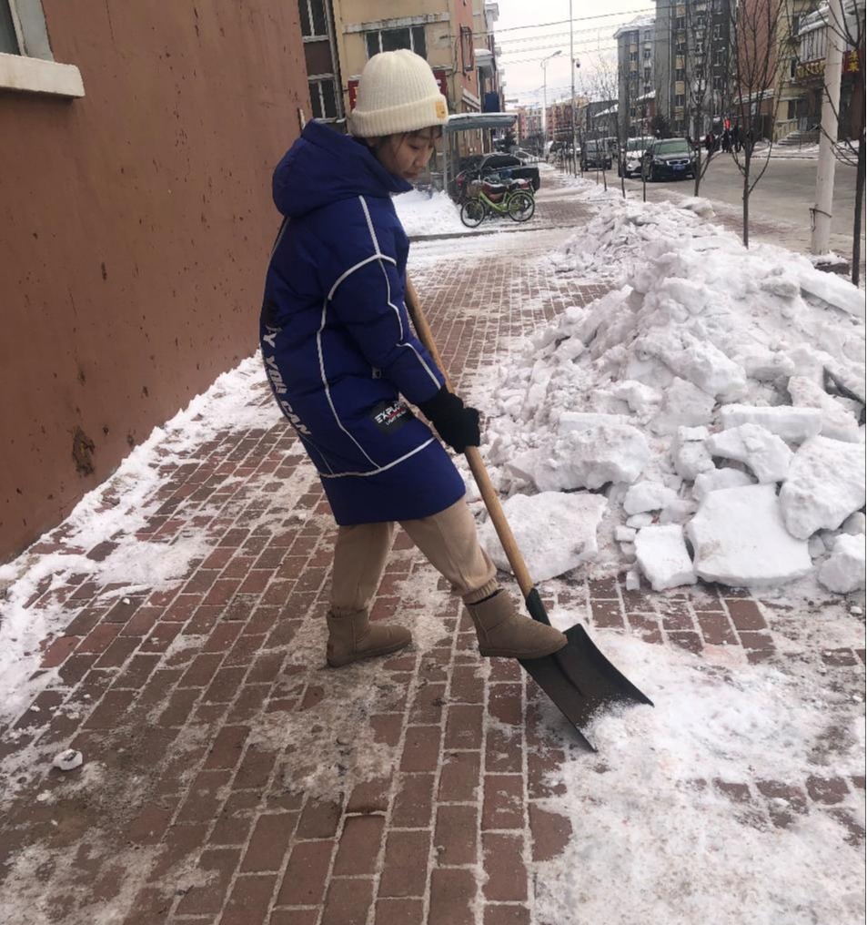 在西北地区,频繁的降雪给道路交通、居民出行带来诸多不便,路面积雪也让社区工作人员十分头疼,因此作为中共预备党员的高鉴和赵昕云蓓同志,加入到了社区的扫雪工作中,为居民们清扫出一条干净、平坦、安全的道路。对此她们认为,为群众办实事是中国共产党“全心全意为人民服务”的根本宗旨要求。自己应弘扬党的优良传统,践行党的初心使命。并表示在剩余的假期生活中,将继续用实际行动践行“我为群众办实事”的精神,为群众办好一件件小事实事。