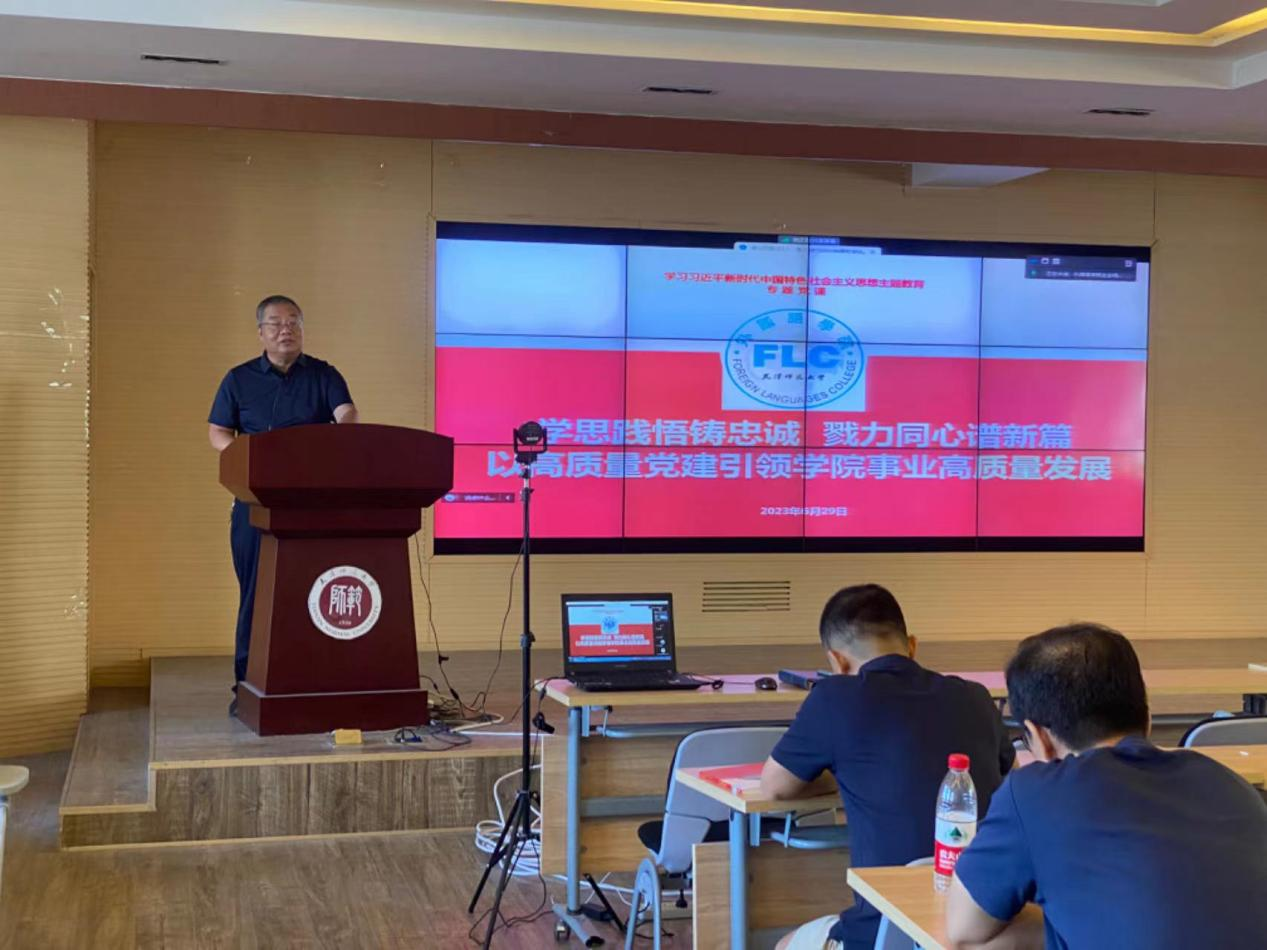 公司党委书记张维和以“学思践悟铸忠诚 勠力同心谱新篇 以高质量党建引领学院事业高质量发展”为题,为小语教师党支部、学术硕士党支部、本科生俄法党支部党员开展讲座。张维和围绕深入学习贯彻习近平新时代中国特色社会主义思想根本任务,准确把握“学思想、强党性、重实践、建新功”总体要求,提出助推学院发展的各项举措,切实推动党建工作各项任务落到实处、见得实效,为学院各项事业发展持续提供政治保障。