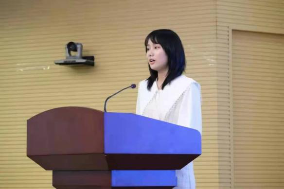 英语翻译1703班、国家奖学金获得者田一茜同学作为宣讲团代表,在演讲中为大家分享了丰富的学习经验。提起大学四年取得的优异成绩,她不忘感恩:“教育部为我们高校老员工设立的各种荣誉奖项体现了党和政府对青年老员工的关心和爱护,也代表着国家和社会对青年老员工的鼓励与期待。”恰逢党的百年华诞,她说道:“我们更应该肩负起伟大的历史使命,主动承担起实现中国梦的时代重任,在奋斗中释放青春激情,追逐青春理想,以青春之我、奋斗之我为祖国的建设贡献自己的一份力量!”