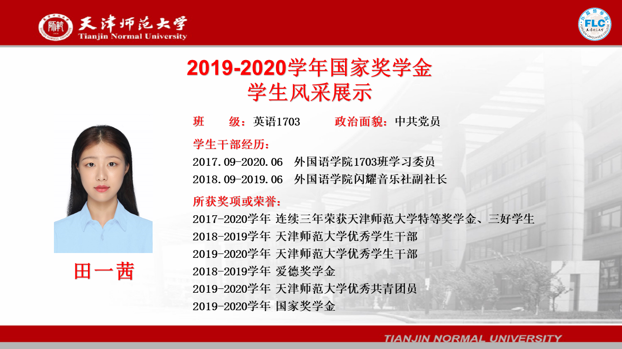 2019-2020学年国家奖学金获得者——田一茜