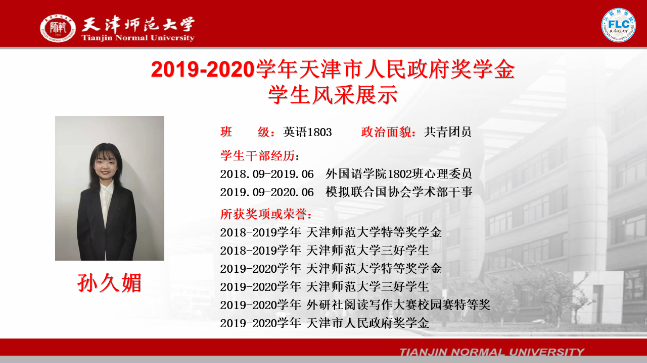 2019-2020学年天津市人民政府奖学金获得者——孙久媚