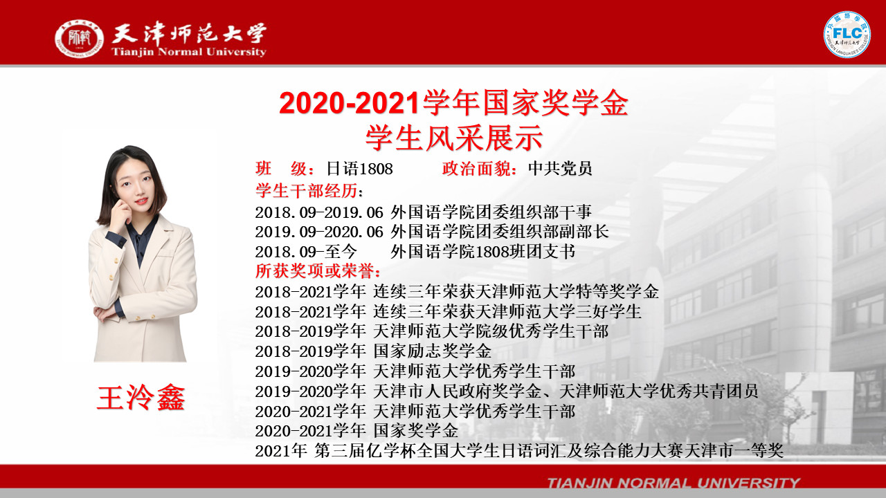 2020-2021学年国家奖学金获得者——王泠鑫