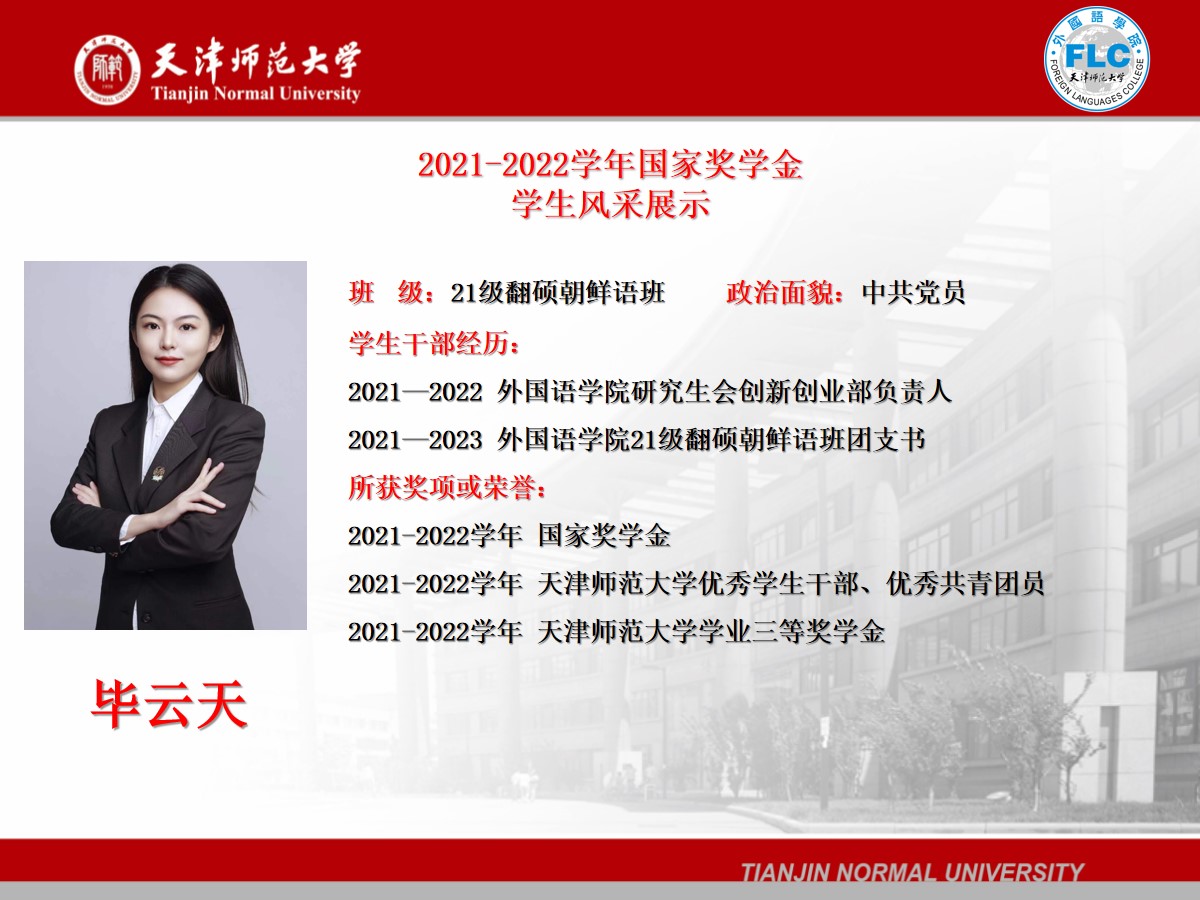 2021-2022学年国家奖学金获得者——毕云天