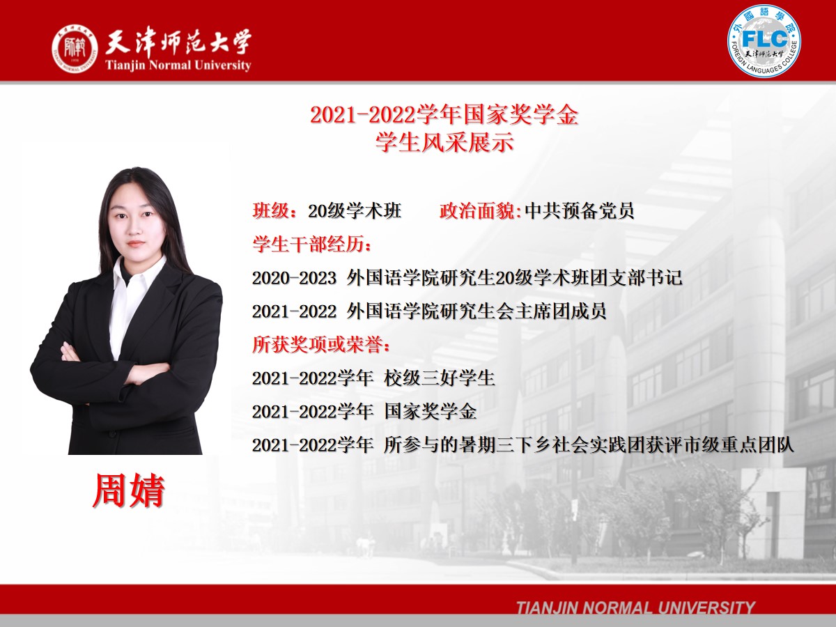 2021-2022学年国家奖学金获得者——周婧