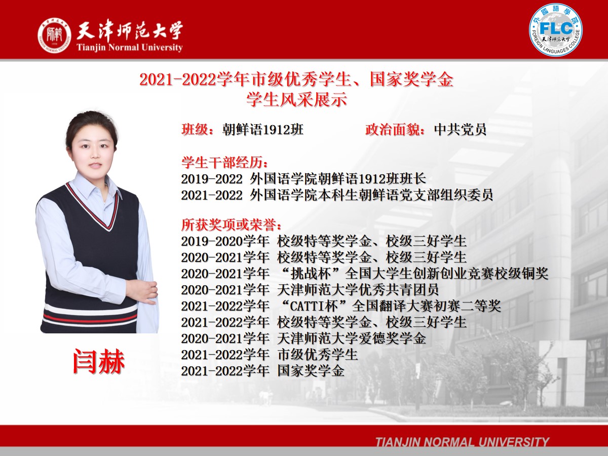 2021-2022学年市级优秀员工、国家奖学金获得者——闫赫