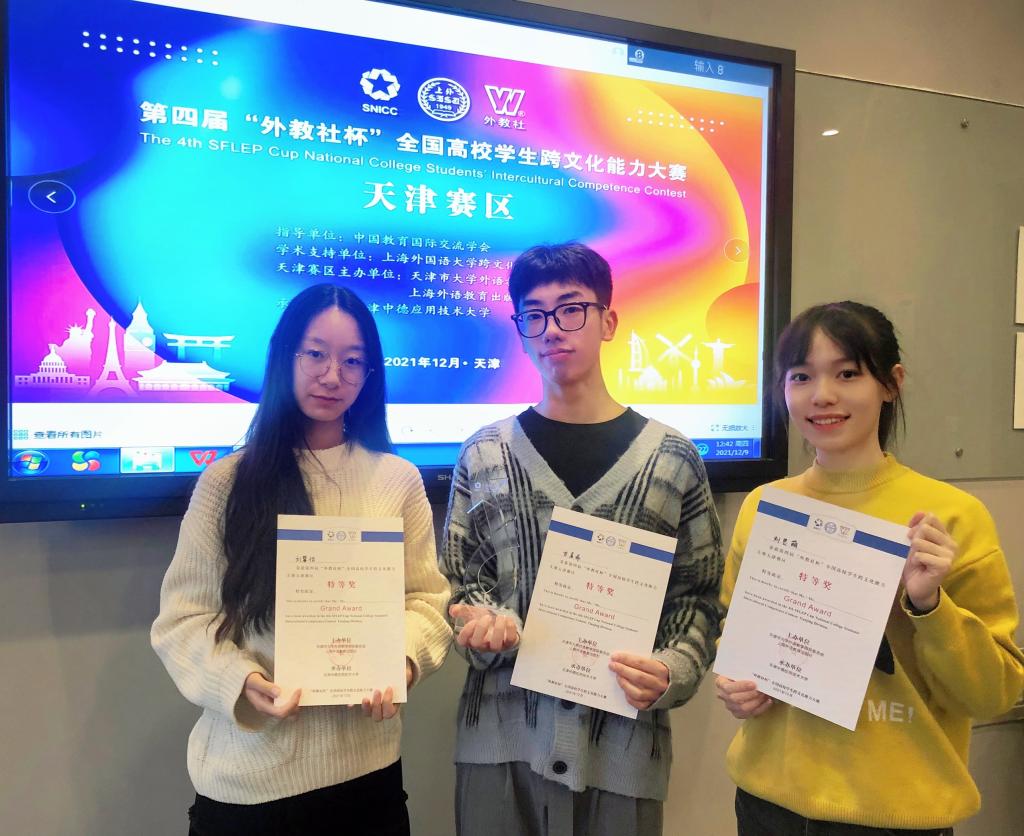 12月4日,第四届“外教社杯”天津市高校员工跨文化能力大赛天津赛区决赛在线上顺利举行。公司历史文化学院19级世界史双语专业刘思萌、政治与行政学院20级行政管理专业甘晨希,以及公司20级日语专业刘馨怡三位同学组成的参赛队伍,荣获天津市特等奖,晋级全国决赛。